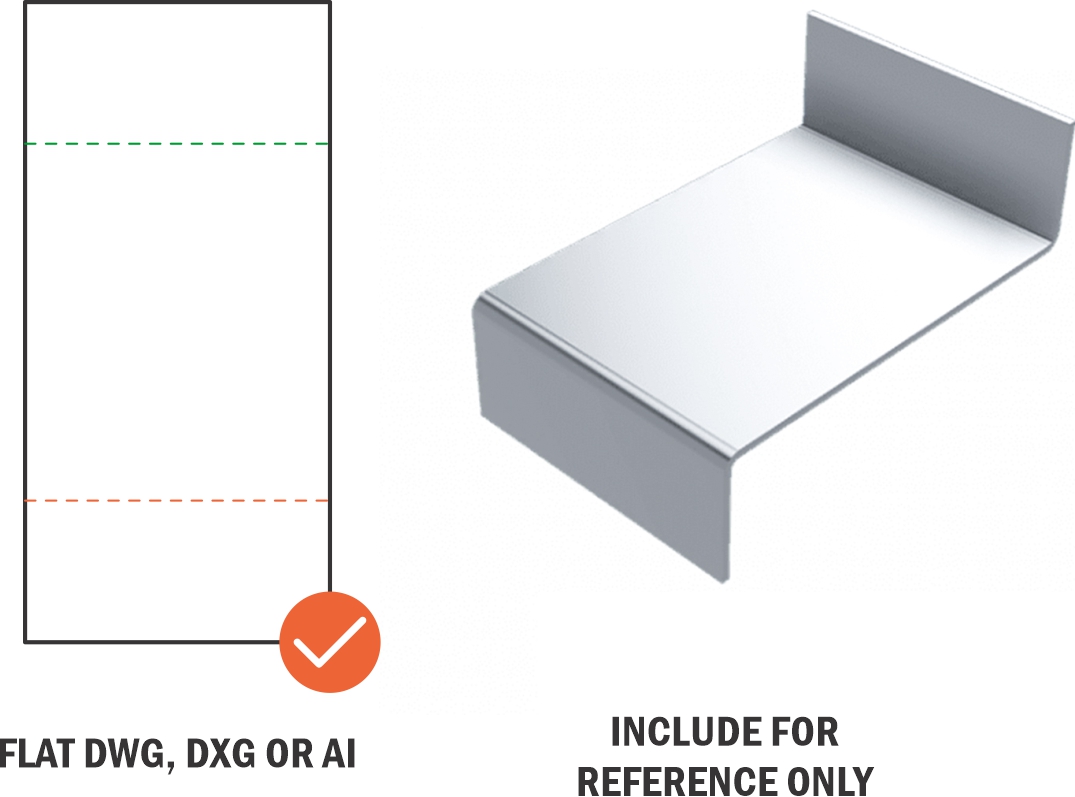 If you design your parts using non-CAD software like Adobe Illustrator, please send us the original .ai file. We’ll handle the conversion. While we accept .ai and .eps files, it's crucial that your bend lines are parallel when uploaded from these programs to avoid processing delays