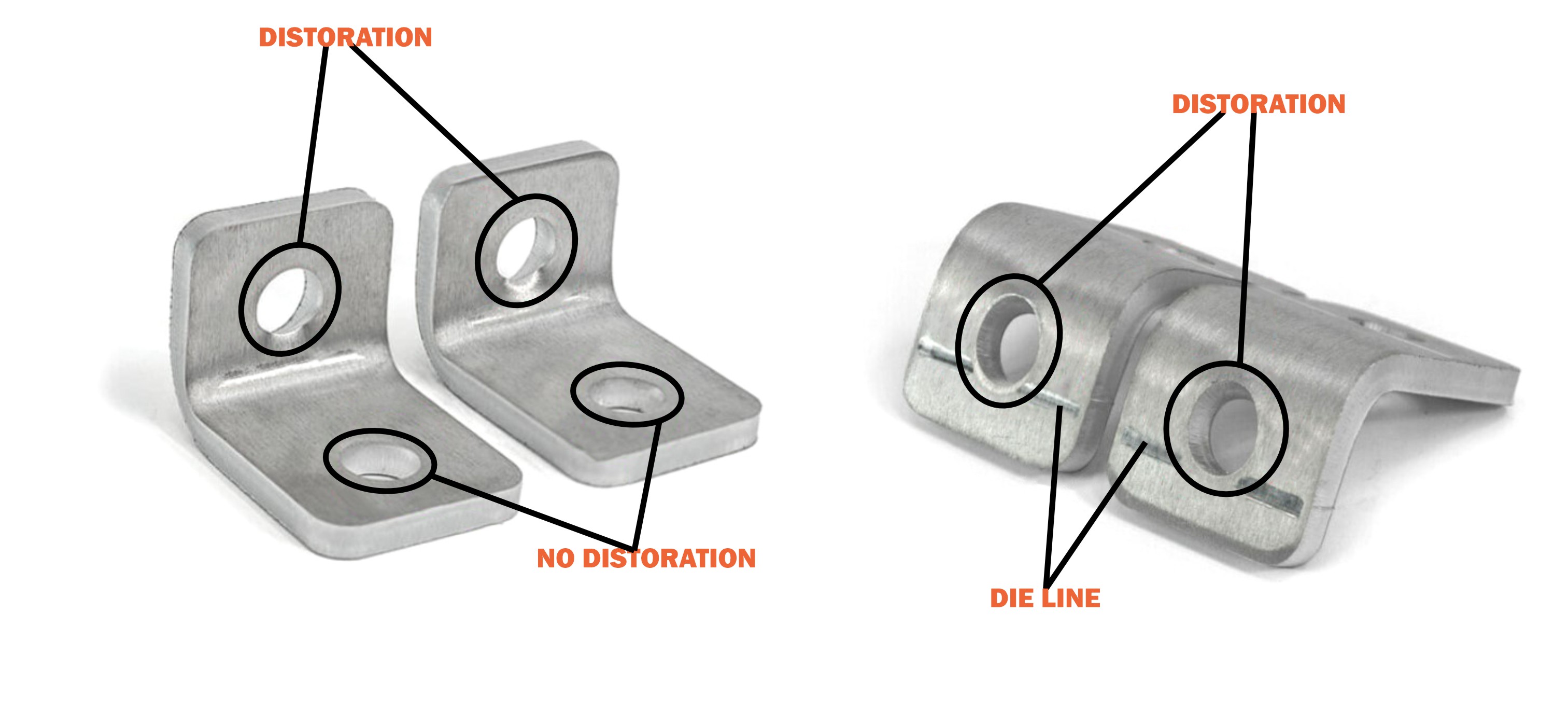 - Witness marks from the bending process will be visible. Depending on the material, these marks can become deeper and more noticeable