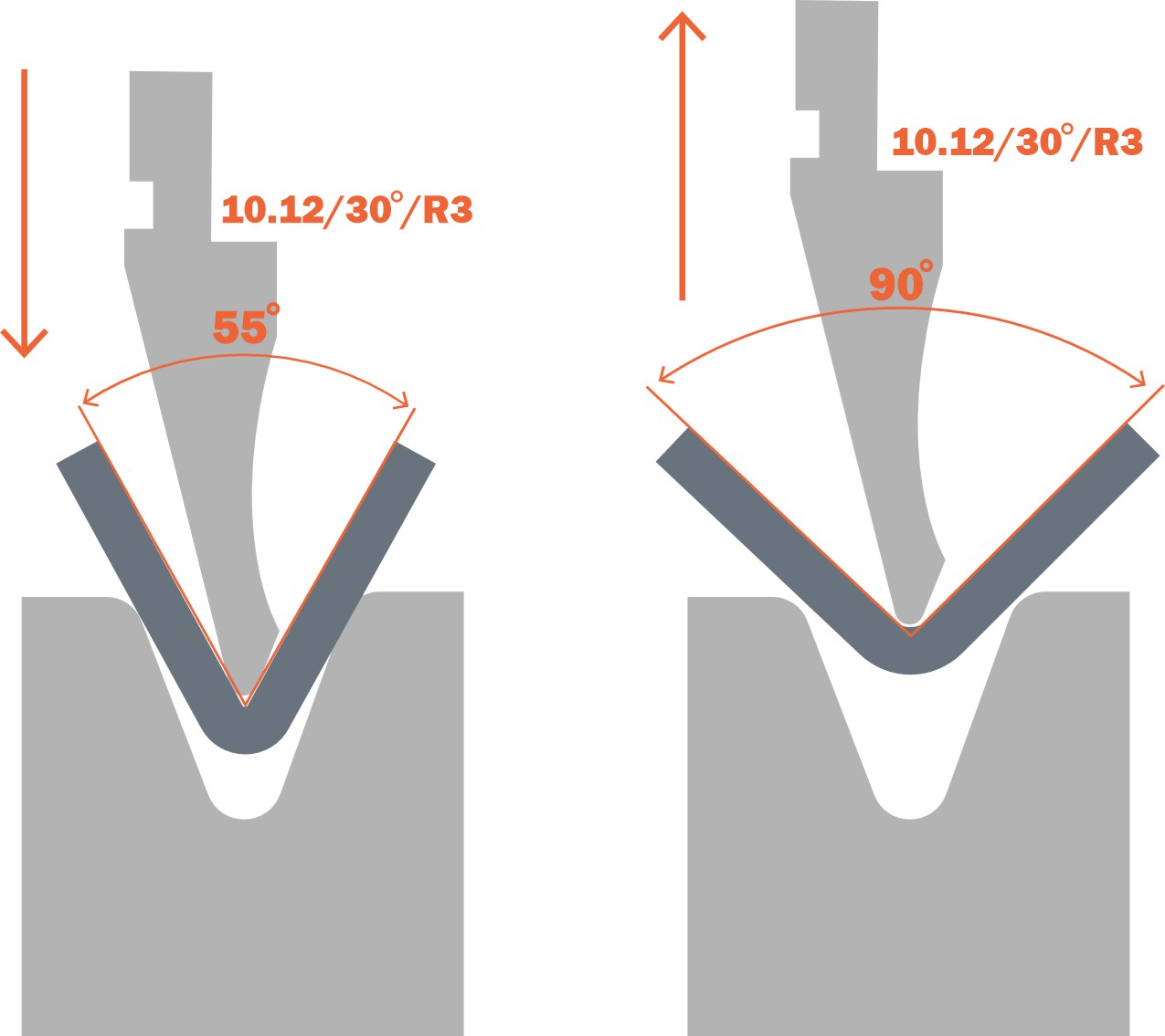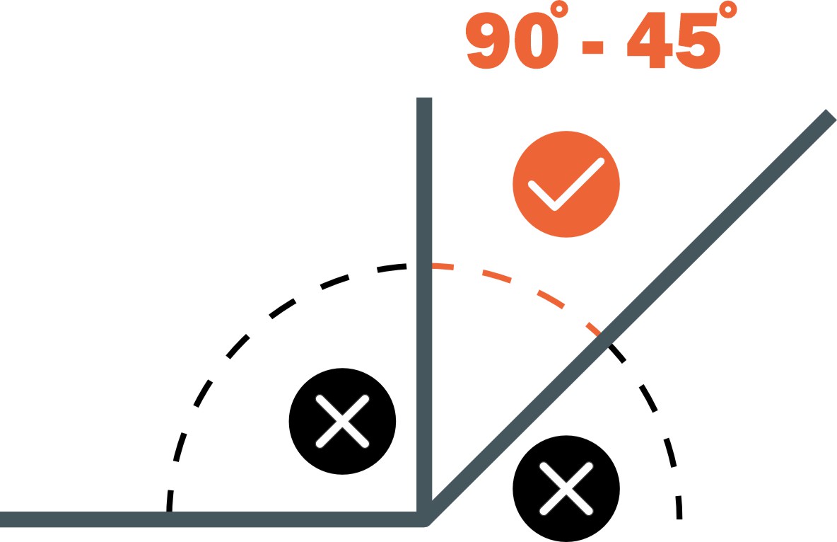 In this example, the material is bent to 120-130 degrees to achieve a 90-degree angle