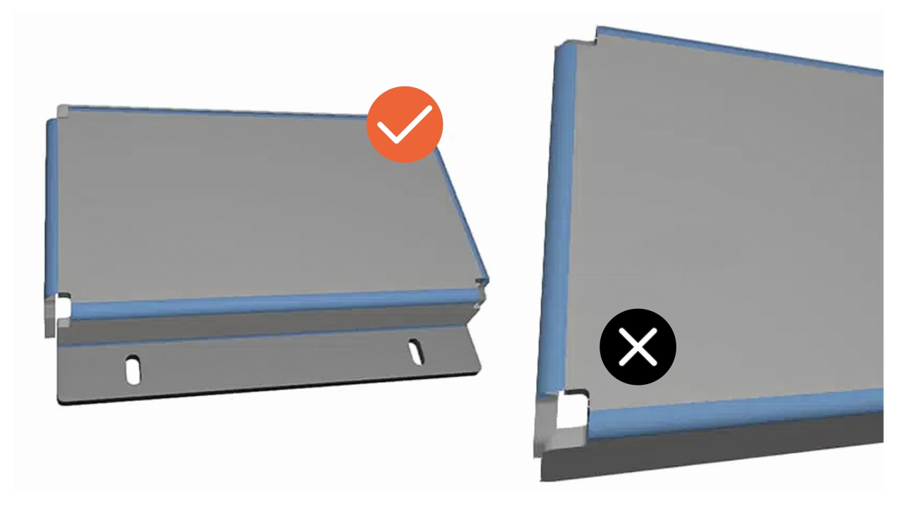 Since polycarbonate parts are overbent to achieve the desired angle, ensure adjacent flanges bent in the