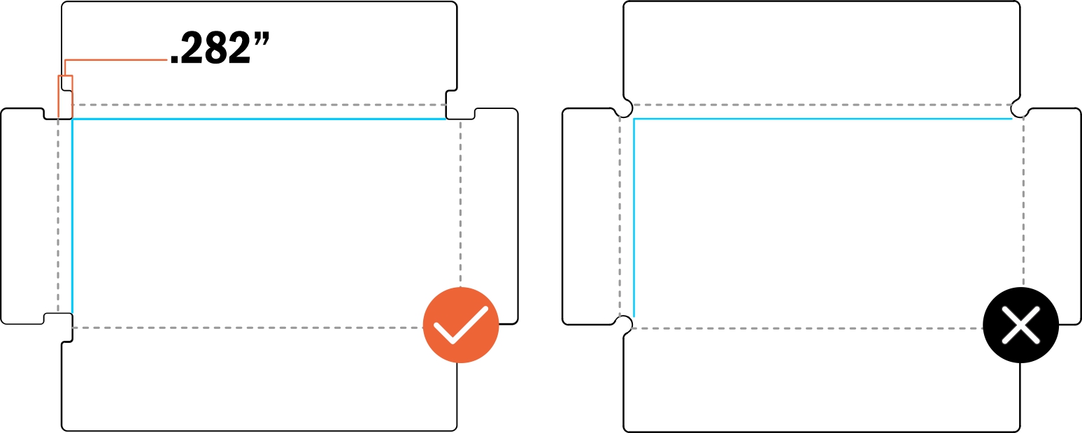 - The breakoff tabs' connecting bridges must not fall within the die lines. Tabs are