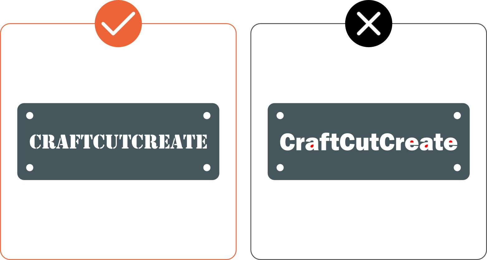- Ensure cut-out text (reversed text) has bridges or has been stencilized