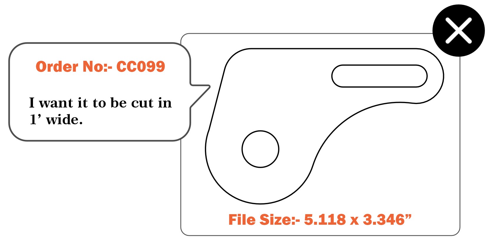 To save time and potentially money, remove any instructions, dimensions, notes, borders, and unused objects from your file. Only include the actual cut paths that the laser should follow. Any notes, quantities, etc., can be mentioned on your order. We’ll contact you promptly if we have any questions.