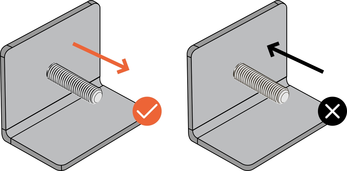 Hardware installation is not permitted on parts with acute bends. For any questions,