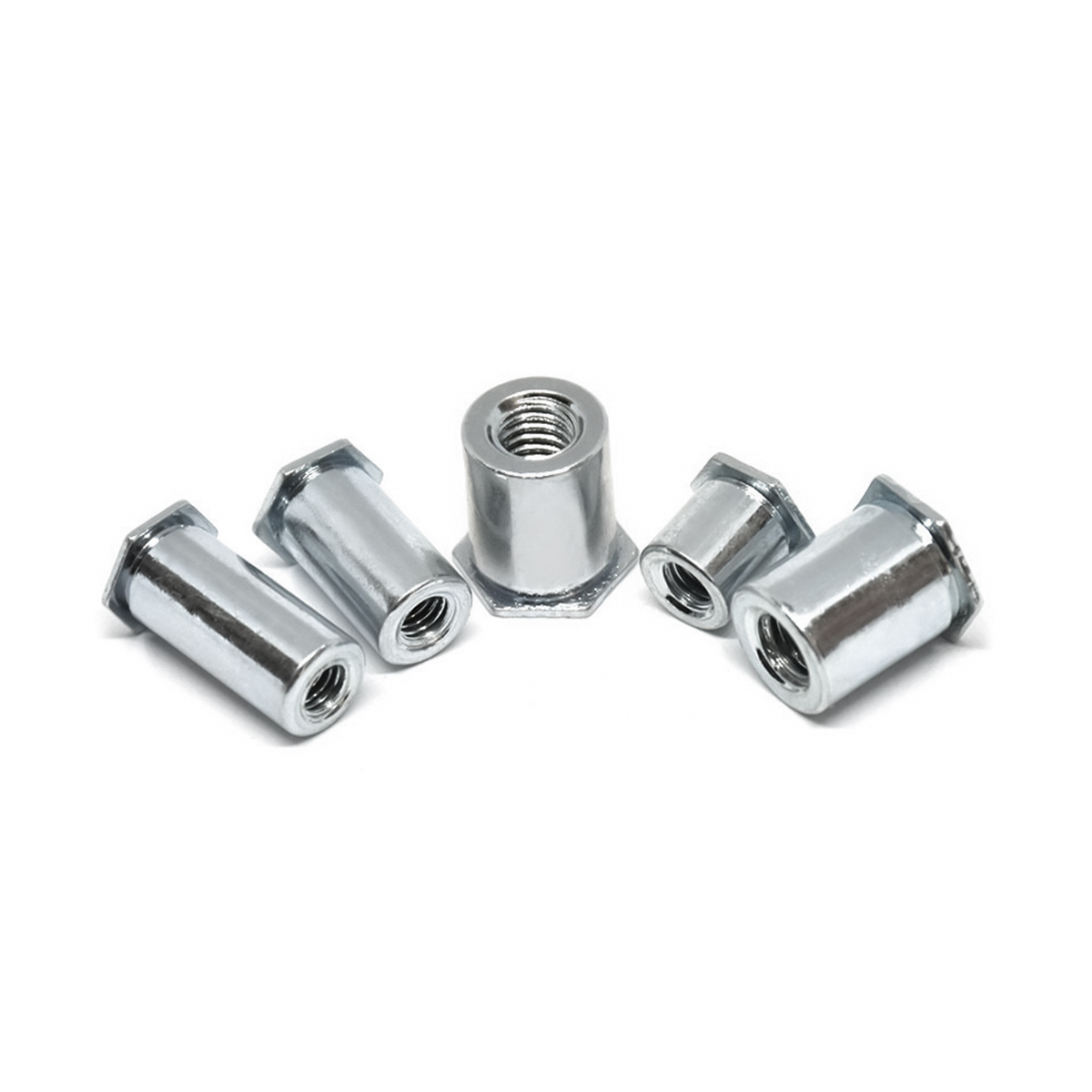 Press fit nuts offer load-bearing threads in metal sheets that are too thin to be tapped.